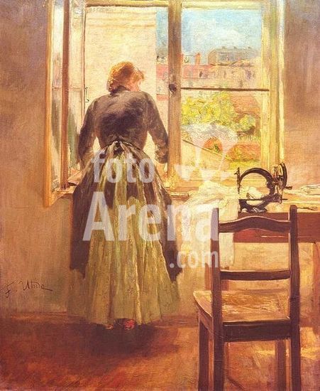 akg257028 Uhde, Fritz von. 1848-1911. "Girl at the Window" (Girl Sewing at the Window), 1890. Oil on canvas, 80.5 × 65.5cm. Inv. Nr. SG 632. Städtische Galerie, Frankfurt am Main, Städelsches Kunstinstitut. Museum: Frankfurt am Main, Städelsches Kunstinstitut.