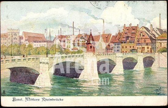 akg2931997 Basel Schweiz, Blick auf die Mittlere Rheinbrücke.