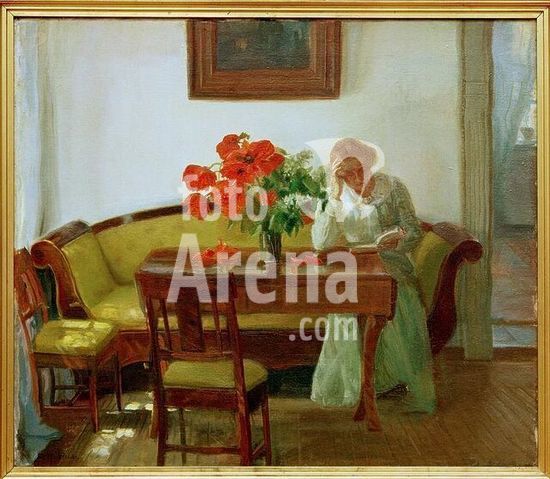 akg340040 Ancher, Anna. Danish artist; 1859-1935. "Interior with poppies and reading woman (Lizzy Hohlenberg", 1905. Oil on canvas, 56.2 × 65 cm. Skagen, Skagen Museum. Museum: Skagen, Skagen Museum.