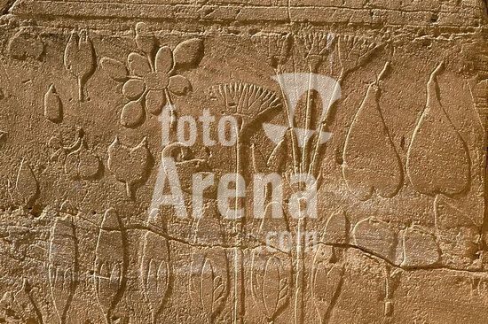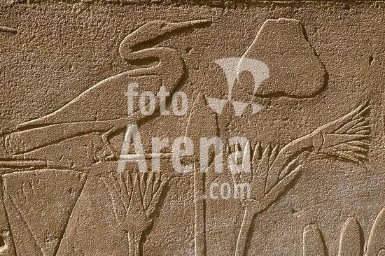 akg420182 Karnak (Upper Egypt), Temple of Amun-Re, Akhmenu - Festival Temple o. Thutmose III. (New Kingdom, 18th Dynasty, c. 1450 BC). Section of the so-called "Botanical Garden" with exotic plants and animals. Relief, sandstone. Photo.