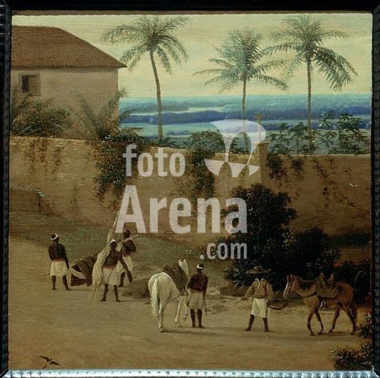 akg572533 Post, Frans. Dutch painter, 1612-1680. "Slaves at a monastery wall". 17th century, South America, Brasil. Oil on wood, 19.5 × 19.5cm. Recife, Istituto Ricardo Brennand. Museum: Recife, Istituto Ricardo Brennand.