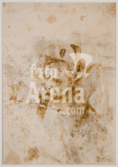 akg5749535 Lorenzo Tiepolo. 1736-1776. "Head of an old man". Pen and brush in bister on paper. Florence, Museo Bardini.