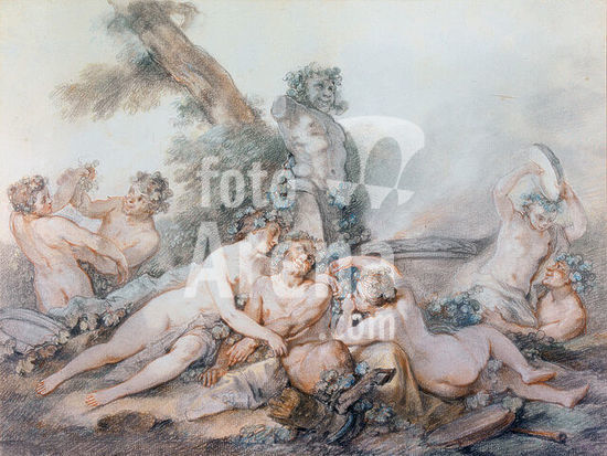 akg7956776 Caresme, Jacques-Philippe (Paris, 1734 - Paris, 1796). Nymphes et Satyres auprès d'un terme de Bacchus, 2e moitié du 18e siècle. Dessin, Pierre noire. DDUT1045, Paris, Petit Palais.