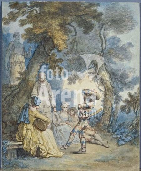 akg7974795 Caresme, Jacques-Philippe (Paris, 1734 - Paris, 1796). Arlequin ou La Danse, 2e moitié du 18e siècle. Dessin, Aquarelle. J 135, Paris, Musée Cognacq-Jay.