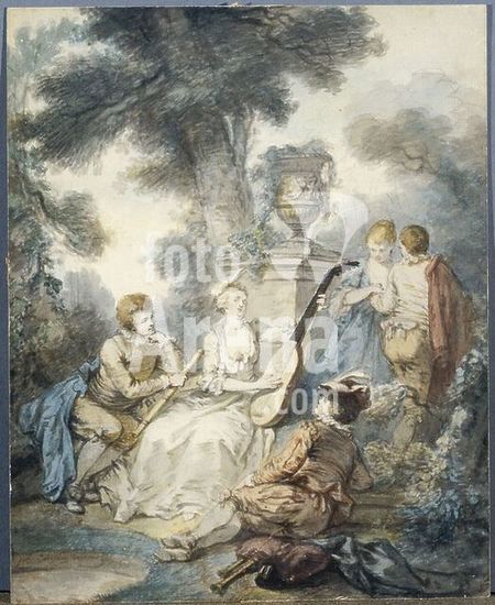 akg7974796 Caresme, Jacques-Philippe (Paris, 1734 - Paris, 1796). La Joueuse de guitare ou La Musique, 2e moitié du 18e siècle. Dessin, Aquarelle. J 136, Paris, Musée Cognacq-Jay.