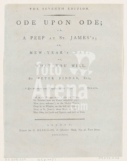 alb3678560 Title Page, from Ode Upon Ode by Peter Pindar. Dimensions: Sheet: 9 3/8 × 7 5/16 in. (23.8 × 18.5 cm). Publisher: George Kearsley (London). Date: 1787. Museum: Metropolitan Museum of Art, New York, USA.