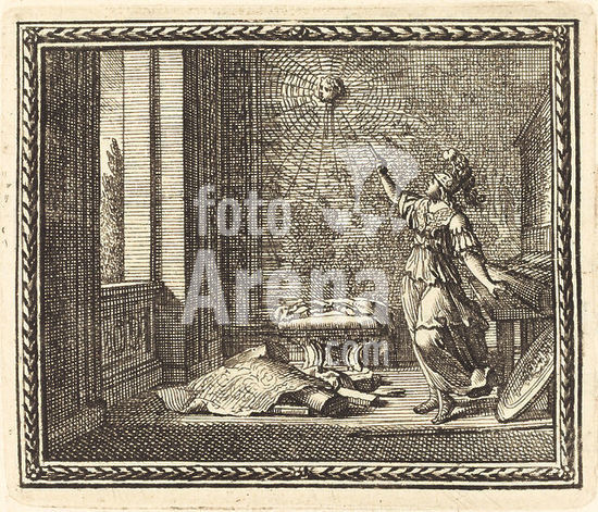 alb3709206 Minerva Changing Arachne into a Spider. Dated: published 1676. Dimensions: plate: 7.6 x 8.9 cm (3 x 3 1/2 in.). Medium: etching and engraving on laid paper. Museum: National Gallery of Art, Washington DC. Author: Jean Lepautre.