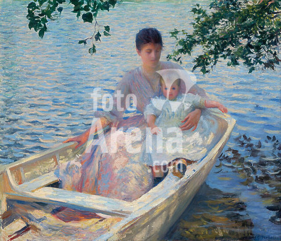 alb3895989 Mother and Child in a Boat. Date/Period: 1892. Painting. Oil on canvas. Height: 765.20 mm (30.12 in); Width: 889 mm (35 in). Author: Edmund Charles Tarbell.