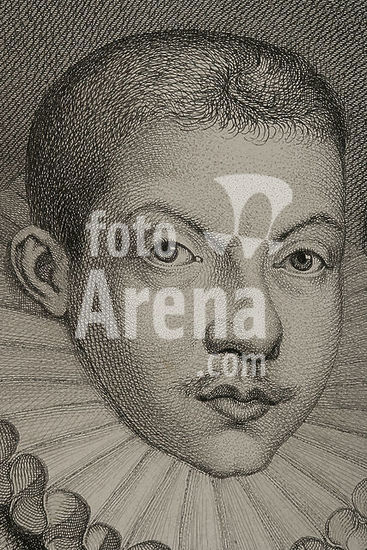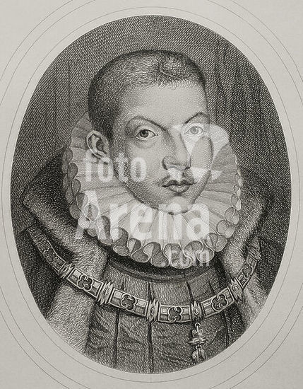 alb5516419 Philip III (1578-1621). King of Spain (1598-1621) and also, as Philip II, King of Portugal, Naples, Sicily and Sardinia. Portrait. Engraving by Masson. Lithographed by Magín Pujadas. Detail. Historia General de España, by Modesto Lafuente. Volume III. Published in Barcelona, 1879. Author: Magín Pujadas. 19th-century Spanish engraver and lithographer. Alphonse Masson (1810/14-1898). French etcher.