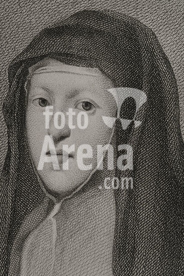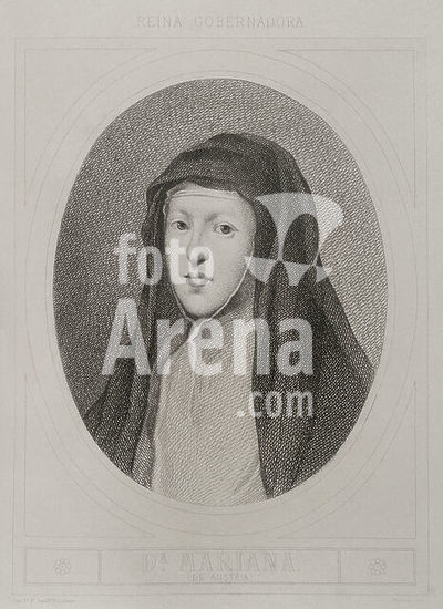 alb5516403 Mariana of Austria (1634-1696). Queen consort of Spain (1649-1665) as second wife of Philip IV and regent (1665-1675) as mother of Charles II (1661-1700). Portrait. Engraving by Masson. Lithography by Magín Pujadas. Detail. Historia General de España, by Modesto Lafuente. Volume III. Published in Barcelona, 1879. Author: Magín Pujadas. 19th-century Spanish engraver and lithographer. Alphonse Masson (1810/14-1898). French etcher.