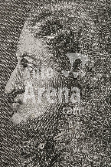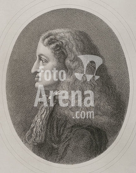 alb8335849 Pedro Calderón de la Barca (1600-1681). Baroque Spanish writer of the Golden Age and Knight of the Order of Santiago. Portrait. Engraving by Geoffroy. "Historia Universal", by César Cantú. Volume V. 1856. Author: Charles Geoffroy (1819-1882). French engraver.