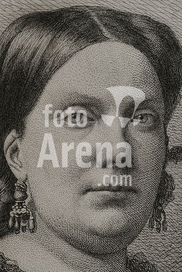 alb5516412 Isabella II (1830-1904). Queen of Spain from 1833 to 1868. Portrait. Engraving. Detail. Historia General de España, by Modesto Lafuente. Volume VI. Published in Barcelona, 1882.