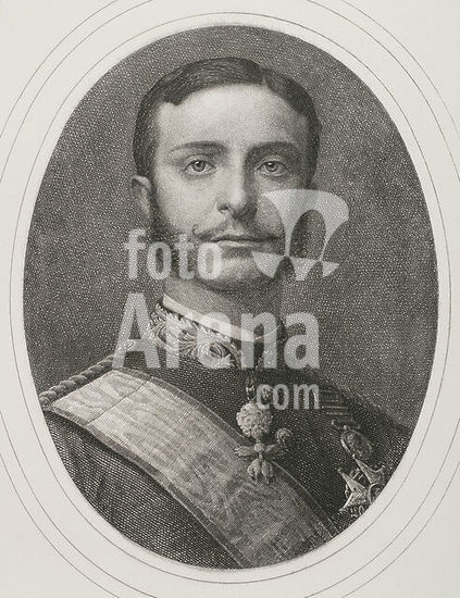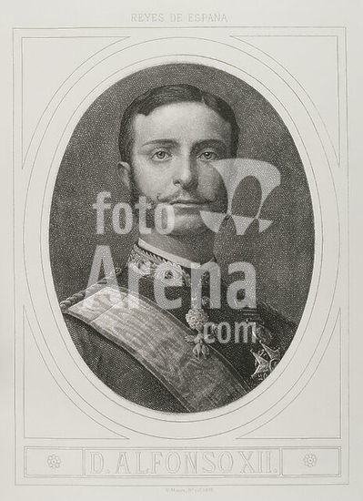 alb5516432 Alfonso XII (Madrid, 1857-Madrid, 1885). King of Spain (1874-1885). Portrait. Engraving by Bartolomé Maura. Detail. Historia General de España, by Modesto Lafuente. Volume VI. Published in Barcelona, 1882. Author: Bartolomé Maura (1844-1926). Spanish painter and engraver.