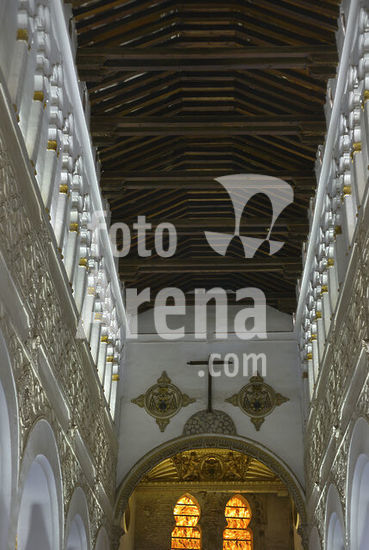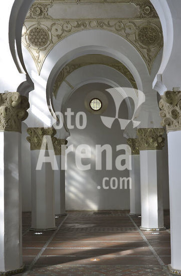 alb5522203 Spain, Castile-La Mancha, Toledo. Synagogue of Santa Maria la Blanca. In 1180 the Jewish community of Toledo financed the construction of the church in Mudejar style, work that was carried out by Muslim builders. The dome of the header was built during the reform of 1550, attributed to Alonso de Covarrubias (1488-1570). Architectural detail of the interior of a nave.
