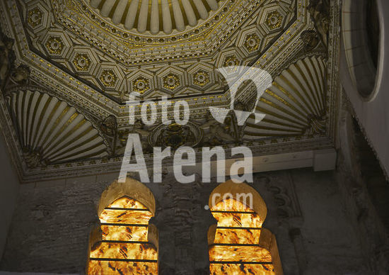 alb5522208 Spain, Castile-La Mancha, Toledo. Synagogue of Santa Maria la Blanca. Architectural detail of the Renaissance dome built during the reform of 1550, attributed to Alonso de Covarrubias (1488-1570). It is located at the head of the central nave of the Prayer Hall. Author: Alonso de Covarrubias (1488-1570). Spanish architect and sculptor.