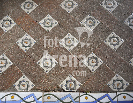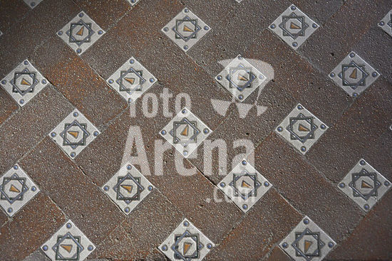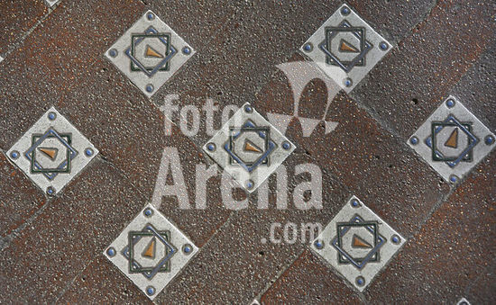 alb5522212 Spain, Castile-La Mancha, Toledo. Synagogue of Santa Maria la Blanca. In 1180 the Jewish community of Toledo financed the construction of the church in Mudejar style, work that was carried out by Muslim builders. Detail of the floor paving, decorated with ceramic mosaic.