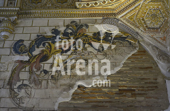 alb5522211 Spain, Castile-La Mancha, Toledo. Synagogue of Santa Maria la Blanca (12th century). Fresco decoration on plaster, dating from after the Mudejar period.