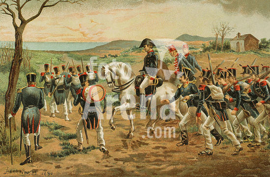 alb5564887 History of Spain. First Carlist War (1833-1840). Third Siege of Bilbao (5 November to 25 December 1836). General Espartero harangued the troops next to Mount San Pablo, during the battle of Luchana, 25 December 1836. Illustration by Serra Pausas. Chromolithography. "Historia de la Revolución Española" (desde la Guerra de la Independencia a la Restauración en Sagunto) by Vicente Blasco Ibáñez. Volume II. Published in Barcelona, 1891. Author: Joan Serra Pausas (active 1861-1902). Spanish artist.