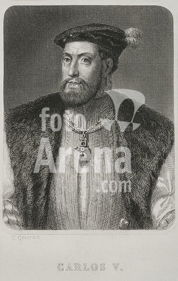 alb8335816 Charles V (1500-1558). Holy Roman Emperor and Archduke of Austria (1519-1556), king of Spain (1516-1556) and Lord of the Netherlands as titular Duke of Burgundy (1506-1555). Portrait. Engraving by Geoffroy. "Historia Universal", by César Cantú, Volume V. 1856. Author: Charles Geoffroy (1819-1882). French engraver.
