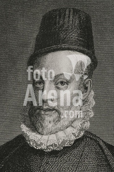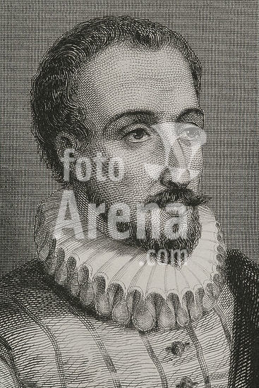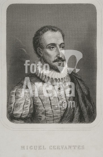 alb8335843 Miguel de Cervantes (1547-1616). Spanish writer. Author of Don Quixote. Portrait. Engraving by Geoffroy. "Historia Universal", by César Cantú. Volume V. 1856. Author: Charles Geoffroy (1819-1882). French engraver.