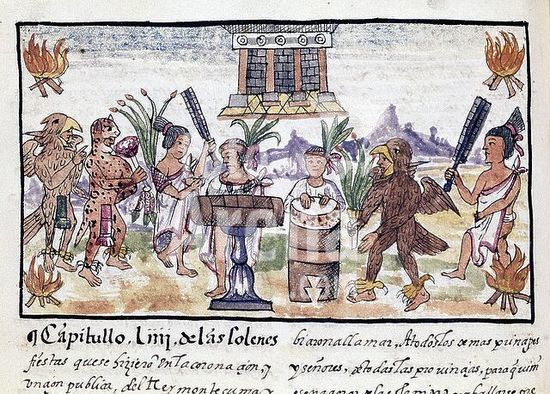 orz003420 Codex Duran, Historia De Las Indias - Human Sacrifice - 1579 - vellum - Fol. 705. Author: DIEGO DURAN DIEGO (1537-1588). Location: BIBLIOTECA NACIONAL-COLECCION. MADRID. SPAIN.