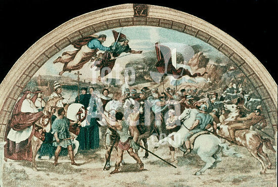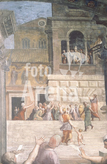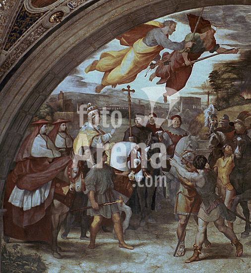 orz234965 'The Meeting of Leo the Great and Attila' (detail), 1514, Fresco. Author: RAFAEL SANZIO O RAFAEL DE URBINO (1483-1520). Location: MUSEOS VATICANOS-ESTANCIA DEL HELIODORO. VATICANO.