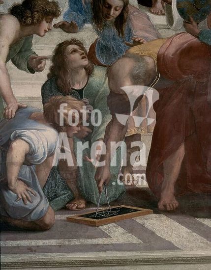 orz236150 'The School of Athens. Detail of Euclid', 1510, Fresco, Before restauration. Author: RAFAEL SANZIO O RAFAEL DE URBINO (1483-1520). Location: MUSEOS VATICANOS-ESTANCIA DEL SELLO. VATICANO.