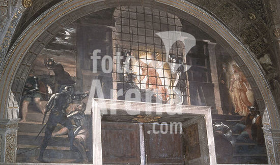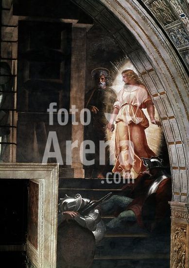 orz169776 LIBERACION DE SAN PEDRO - 1513-14 - RESTAURADO. Author: RAFAEL SANZIO O RAFAEL DE URBINO (1483-1520). Location: MUSEOS VATICANOS-ESTANCIA DEL HELIODORO. VATICANO. APOSTLE PETER.