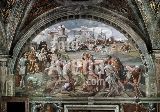 orz053475 Italian school. The Battle of Ostia. 1514-1515. Vatican, Raphael's rooms. Author: RAFAEL SANZIO O RAFAEL DE URBINO (1483-1520). Location: MUSEOS VATICANOS-ESTANCIA DEL SELLO. VATICANO. PAPA LEON IV. LEON IV PAPA.