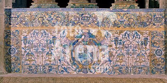 orz062716 FRONTAL DEL LA CAPILLA BAUTISMAL MOSAICO-S XVI. Location: IGLESIA COLEGIAL DE SANTA MARIA LA MAYOR. TALAVERA DE LA REINA. Toledo. SPAIN.