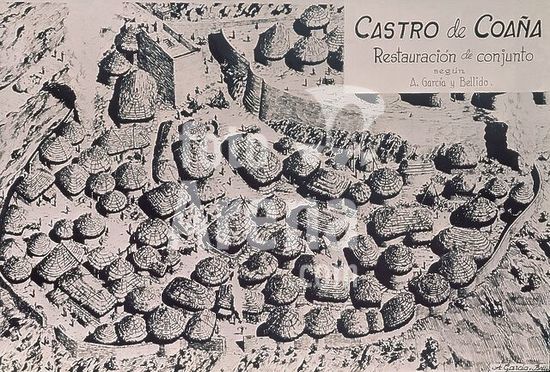 orz064589 RECONSTRUCCION DEL CASTRO DE COAÑA SEGUN GARCIA BELLIDO. Author: GARCIA BELLIDO. Location: MUSEO ARQUEOLOGICO-COLECCION. Oviedo. ASTURIAS. SPAIN.