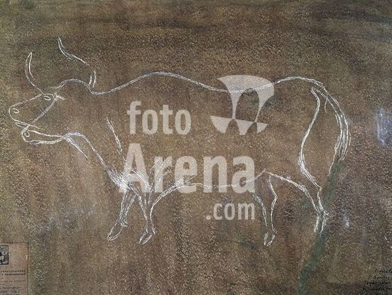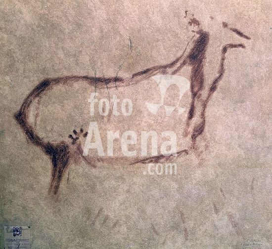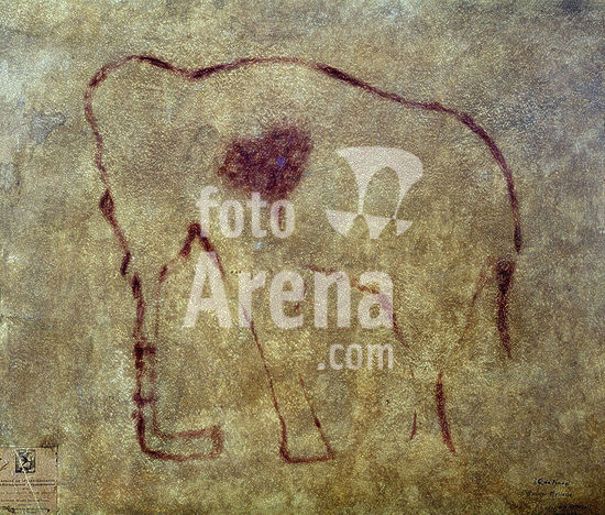 orz064597 ROCK PAINTING FROM THE CAVE OF PINDAL - INJURED MAMMOTH. Location: MUSEO ARQUEOLOGICO-COLECCION. Oviedo. ASTURIAS. SPAIN.