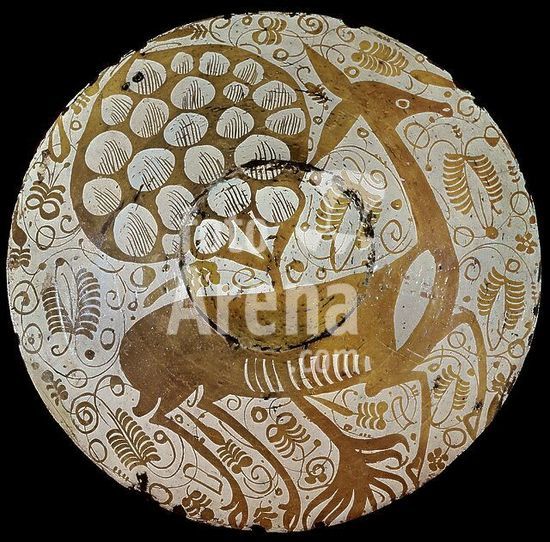 orz067695 REVERSO DE UN "BACIGRAN" O BRASERO DECORADO CON BUITRE Y HELECHOS - MANISES - SIGLO XV. Location: INSTITUTO VALENCIA DE DON JUAN-COLECCION. MADRID. SPAIN.