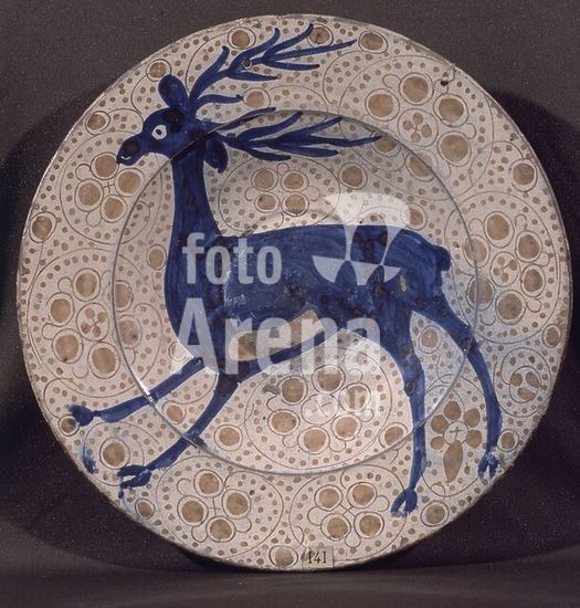 orz067693 REVERSO DE PLATO CON UNA GACELA SOBRE FONDO DE HELECHOS - MANISES - SIGLO XV. Location: INSTITUTO VALENCIA DE DON JUAN-COLECCION. MADRID. SPAIN.