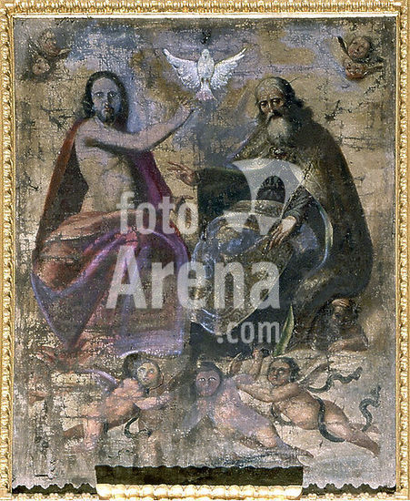 orz126243 EL ARCANGEL SAN MIGUEL VENCIENDO A LUCIFER (COPIA DEL SIGLO XVIII). Author: RAFAEL SANZIO O RAFAEL DE URBINO (1483-1520)-COPIA SIGLO XVIII. Location: IGLESIA DE NUESTRA SEÑORA DE LA ESTRELLA. PALOMARES DEL RIO. Seville. SPAIN.