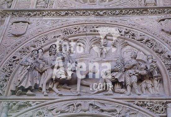 orz184117 PUERTA DE RAMOS - GRUPO ESCULTORICO EN RELIEVE DE LA ENTRADA TRIUNFAL DE JESUS EN JERUSALEN - S XVII. Location: CATEDRAL NUEVA. SALAMANCA. SPAIN.