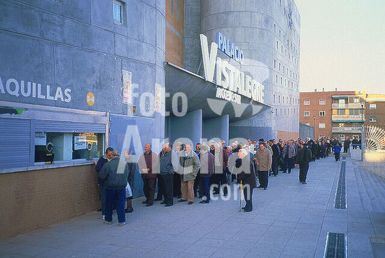 orz187538 ANCIANOS HACIENDO COLA PARA COMPRAR ENTRADAS EN LAS TAQUILLAS DEL PALACIO VISTALEGRE - S XX. Author: MIKE SCHLAICH (1960-). Location: PALACIO DE VISTALEGRE. MADRID. SPAIN.