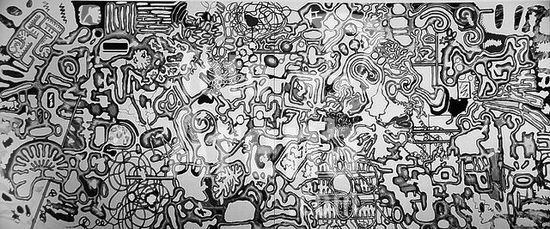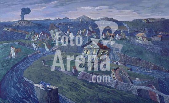orz189776 LA CIUDAD DEL BURRO AZUL - 2004 - 81x130 - OLEO/CARBON Y TEMPERA SOBRE TELA. Author: DANIEL QUINTERO. Location: PRIVATE COLLECTION. MADRID. SPAIN.