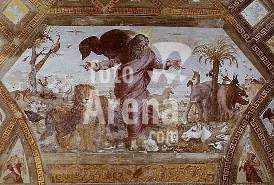 orz201540 CREATION OF ANIMALS - Raphael Rooms - 1513/1521 - FRESCO. Author: RAFAEL SANZIO O RAFAEL DE URBINO (1483-1520). Location: MUSEOS VATICANOS-GALERIA DE APARTAMENTOS. VATICANO. DIOS PADRE.