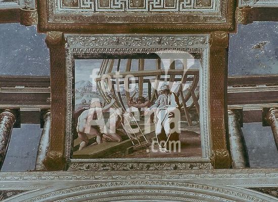 orz201740 CONSTRUCCION DEL ARCA - TERCERA BOVEDILLA LOGIA DE RAFAEL - 1513/1521 - FRESCO. Author: RAFAEL SANZIO O RAFAEL DE URBINO (1483-1520). Location: MUSEOS VATICANOS-GALERIA DE APARTAMENTOS. VATICANO. NOAH.