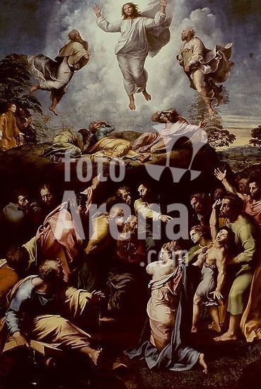 orz201756 The Transfiguration - ca.1519-20 - oil on panel. Author: RAFAEL SANZIO O RAFAEL DE URBINO (1483-1520). Location: MUSEOS VATICANOS-PINACOTECA. VATICANO. JESUS. MOSES. APOSTLE PETER. SAN JUAN EVANGELISTA Y APOSTOL. ELIAS PROFETA SIGLO IX AC. Apóstol Santiago el Mayor.