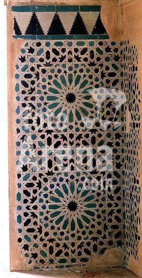 orz221844 ZOCALO DE AZULEJOS DE LA ALHAMBRA DE GRANADA DEL PABELLON DEL PARTAL - ALICATADOS DE GAMA FRIA ESTRELLADOS. Location: ALHAMBRA. GRANADA. SPAIN.