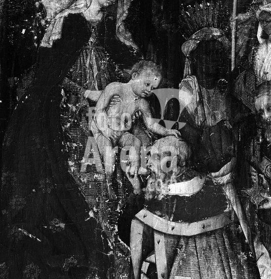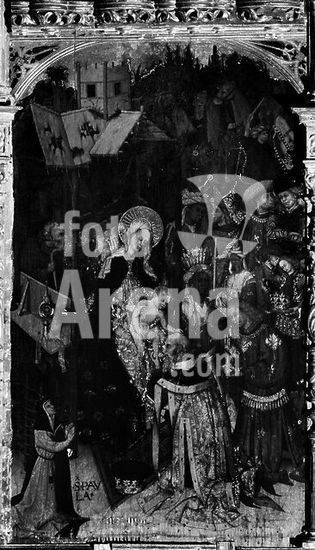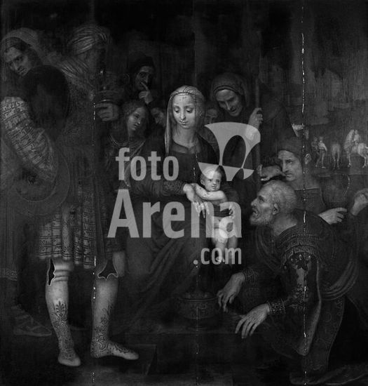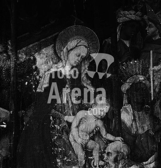 orz225967 EPIFANIA - ADORACION DE LOS REYES MAGOS - SIGLO XVI - FOTOGRAFIA EN BLANCO Y NEGRO - AÑOS 60. Author: FERNANDO YAÑEZ DE ALMEDINA (1480-1536). Location: CATEDRAL DE SANTA MARIA-INTERIOR. BASIN. CUENCA. SPAIN. INFANT JESUS. VIRGIN MARY. Melchor.