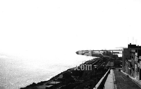 orz225815 VISTA DEL PUERTO DE TARRAGONA DESDE EL BALCON DEL MEDITERRANEO - FOTOGRAFIA EN BLANCO Y NEGRO - AÑOS 60. Location: EXTERIOR. TARRAGONA. SPAIN.