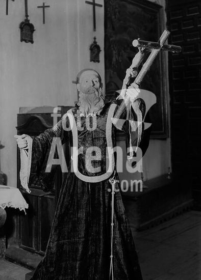 orz225872 ESCULTURA DE SAN FRANCISCO DE PAULA - SIGLO XVIII - FOTOGRAFIA EN BLANCO Y NEGRO - AÑOS 60. Location: ST. PETER'S CHURCH. VILLALON DE CAMPOS. Valladolid. SPAIN.