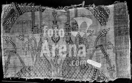 orz225941 TELA ARABE PROCEDENTE DE LEYRE HALLADA EN UNA DE LAS ARQUETAS DEL ALTAR MAYOR DE LA CATEDRAL DE PAMPLONA - FOTOGRAFIA EN BLANCO Y NEGRO. Location: MUSEO DE NAVARRA. Pamplona. NAVARRA. SPAIN.