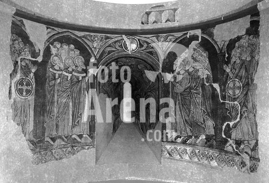 orz225945 ABSIDE CON PINTURA MURAL PROCEDENTE DE LA IGLESIA DE SAN MARTIN DE ARTAIZ - SIGLO XIII - ROMANICO NAVARRO - FOTOGRAFIA EN BLANCO Y NEGRO - AÑOS 60. Location: MUSEO DE NAVARRA. Pamplona. NAVARRA. SPAIN.