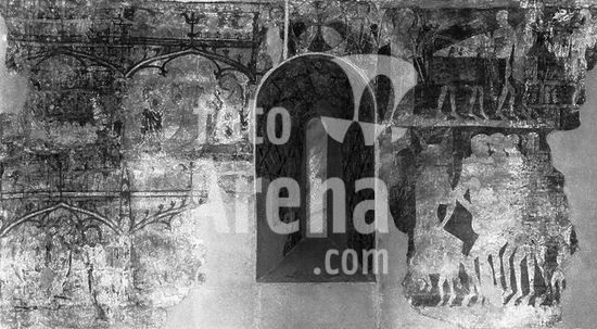 orz225947 PINTURAS MURALES PROCEDENTES DE LA IGLESIA DE LA ASUNCION DE OLLETA - SIGLO XV - FOTOGRAFIA EN BLANCO Y NEGRO - AÑOS 60. Location: MUSEO DE NAVARRA. Pamplona. NAVARRA. SPAIN.
