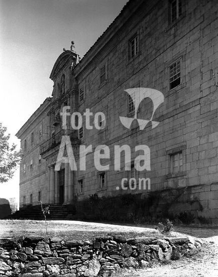 orz225950 FACHADA DE LA IGLESIA DEL MONASTERIO DE SAN VICENTE DEL PINO - FOTOGRAFIA EN BLANCO Y NEGRO - AÑOS 60. Location: MONASTERIO DE SAN VICENTE DEL PINO. MONFORTE DE LEMOS. LUGO. SPAIN.
