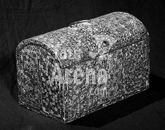 orz226260 COFRE DEL SIGLO XV CON OBJETOS PERTENECIENTES A LOS REYES CATOLICOS - FOTOGRAFIA EN BLANCO Y NEGRO - AÑOS 60. Location: CATEDRAL-CAPILLA REAL-INTERIOR. GRANADA. SPAIN.